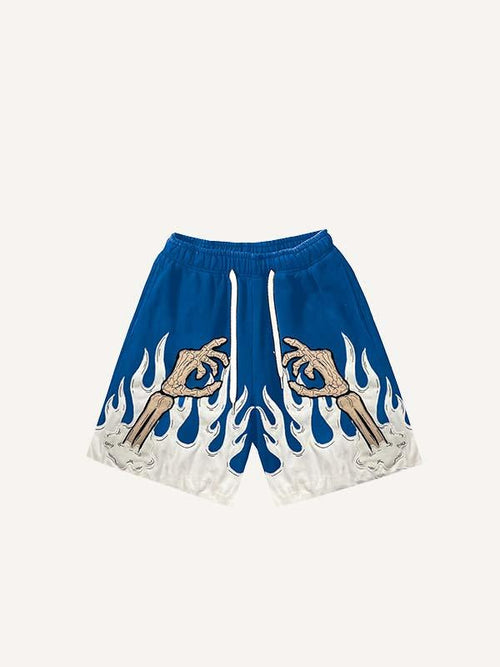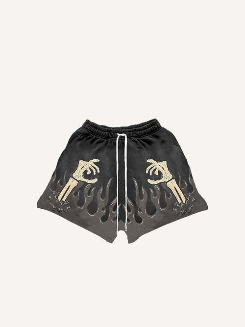 Pantalones cortos falsos de dos piezas con estampado de esqueleto y cordón en la cintura -