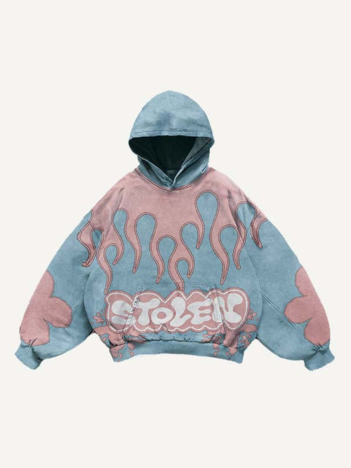 Sudadera con capucha y bolsillos inclinados con estampado de calcomanías falsas de figuras y letras -