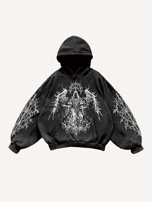 Sudadera con capucha y bolsillos inclinados con estampado de fuego, esqueleto y cruz en bloques de color -